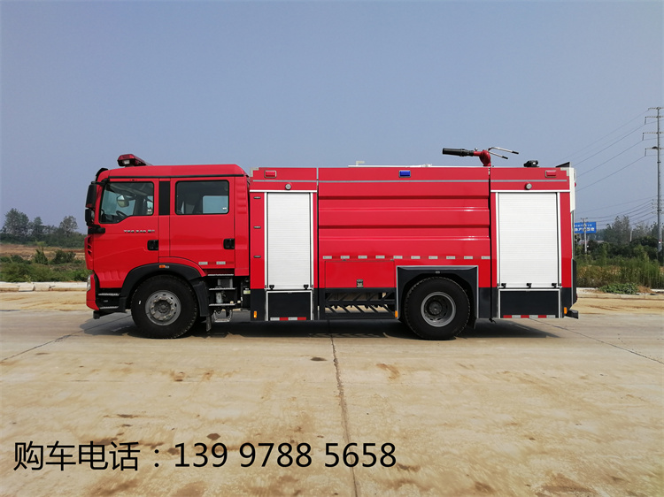 豪沃7噸泡沫消防車整車型號(hào):JDF5200GXFPM70/Z6,水罐容積6.1立方米,泡沫容積1.05立方米。軸距4600mm